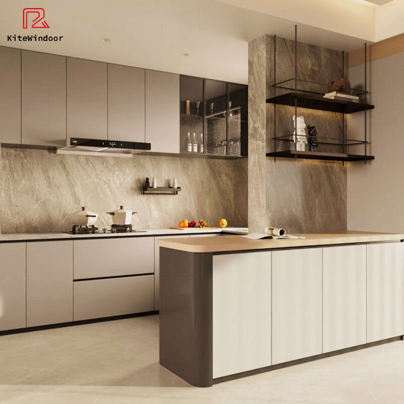 Customizable Waterproof Sink Backsplash Modern Style Full Aluminum Kitchen Cabinet Wardrobe Set